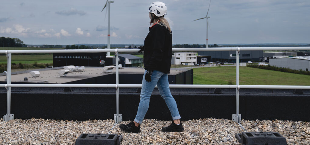 Our freestanding guardrail systems are modular, permanently installed, and fully tested for use on flat roofs with up to a 10° pitch. Built on counterweight principles, these systems offer robust edge protection without penetrating the roof membrane, avoiding costly structural impact.